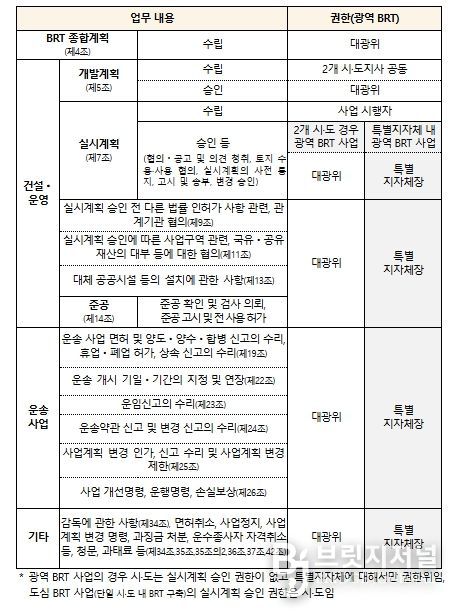 이번에 위임되는 광역 BRT 사무의 주요 내용은 다음과 같다.