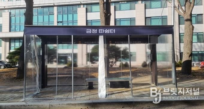브릿지저널 윤나영 기자 | 부산시 금정구는 지난 17일부터 약 5일간에 걸쳐 버스 이용 승객들의 편의와 한파 피해로부터 보호하기 위하여 추위대피소인 ‘금정따쉼터’를 설치했다.