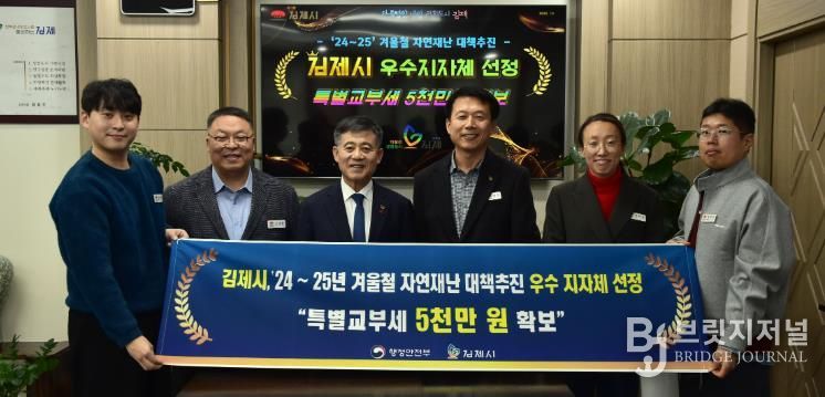 브릿지저널 윤나영 기자 | 김제시는 지난 24일 행정안전부가 주관한 자연재난 대책 추진 평가에서 우수 지방자치단체로 선정돼 특별교부세 5천만 원을 지원받는다고 밝혔다.