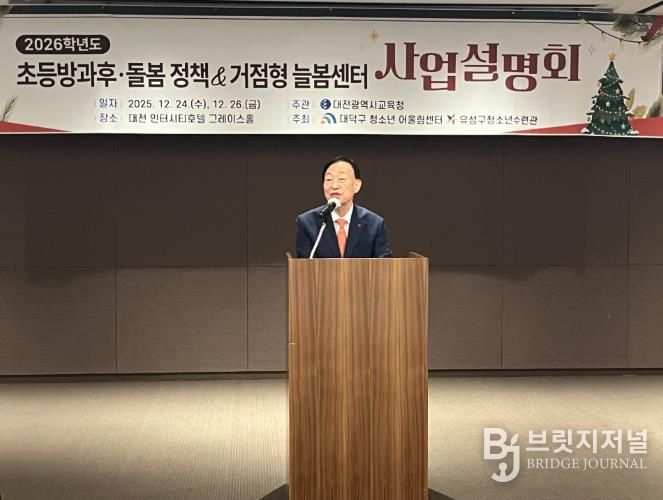 브릿지저널 정보영 기자 | 대전시교육청은 12월 24일과 26일 양일간에 걸쳐 호텔 인터시티에서 대전 내 전체 초등학교장을 대상으로‘2026학년도 초등방과후·돌봄 정책 및 거점형 늘봄센터 사업설명회’를 개최했다고 밝혔다.