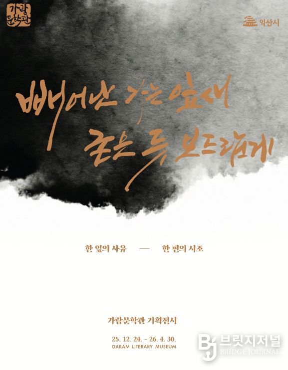브릿지저널 윤나영 기자 | 익산시 가람문학관에서 내년 4월까지 시조 시인 가람 이병기 선생의 문학세계를 조명하는 기획전 '빼어난 가는 잎새 굳은 듯 보드랍게'를 선보인다.