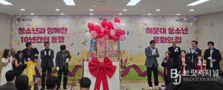 브릿지저널 윤나영 기자 | 해운대구는 지난 20일 ‘청소년과 함께한 10년의 성장’이라는 주제로 해운대청소년문화의집 개관 10주년 기념행사를 성황리에 개최했다. 행사에는 청소년과 지역주민 300여 명이 참여해 다양한 프로그램을 즐기며 청소년과 지역사회가 함께하는 축제의 장을 만들었다.