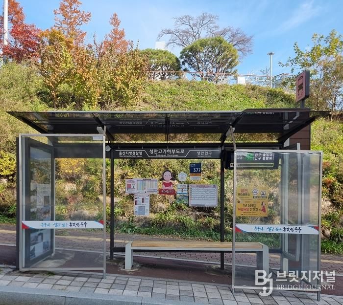 브릿지저널 윤나영 기자 | 울산 중구가 주민들이 겨울에도 쾌적하게 대중교통을 이용할 수 있도록 버스승강장에 바람막이와 온열 의자를 설치했다.