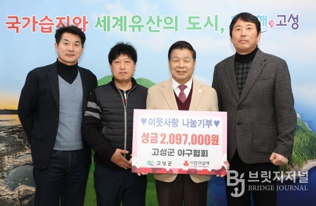 브릿지저널 김경미 기자 | 고성군 야구협회(협회장 신용락)는 12월 26일, 고성군을 방문하여 어려운 이웃에게 써달라며 이웃돕기 성금 209만 7천 원을 기탁했다.
