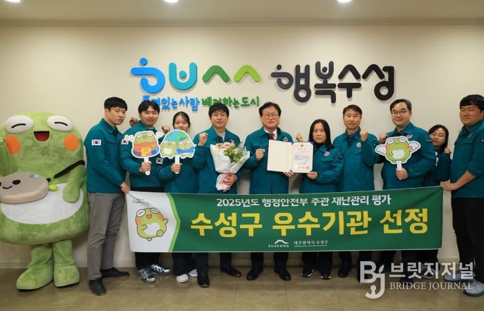 브릿지저널 김진석 기자 | 대구 수성구는 행정안전부가 주관한 ‘2025년도 재난관리 평가’에서 재난관리 우수기관으로 선정됐다고 밝혔다.