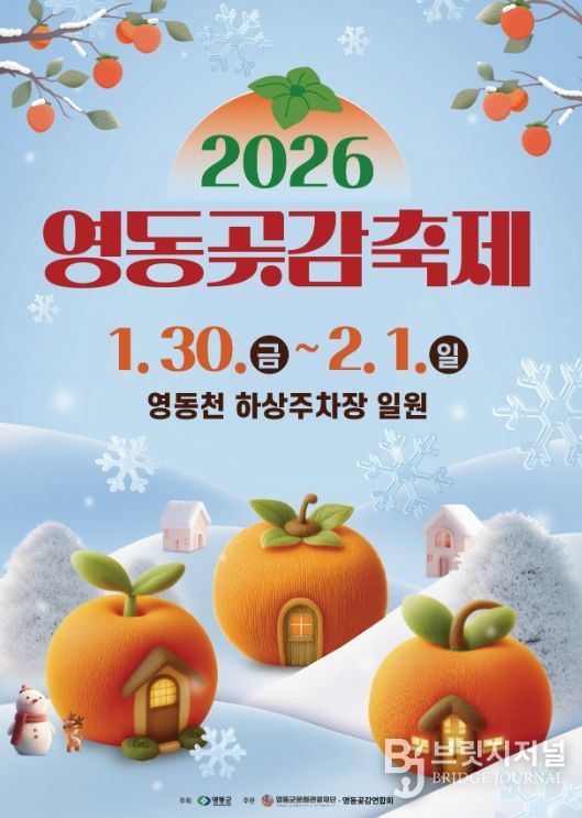 브릿지저널 김경미 기자 | 충청북도 영동군의 대표 겨울 축제인 2026 영동곶감축제가 오는 2026년 1월 30일부터 2월 1일까지 3일간 영동천 하상주차장 일원에서 열린다.