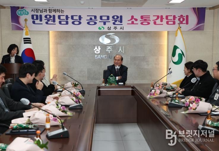 브릿지저널 정보영 기자 | 상주시는 12월 24일 시청 소회의실에서 민원담당 공무원과의 소통 간담회를 개최했다. 이번 간담회는 연말 민원처리 마일리지 및 국민신문고 민원 처리 우수 공무원으로 선정된 직원 18명의 시상식이 함께 진행됐다.