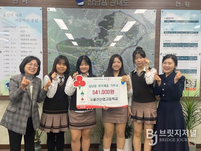 브릿지저널 윤나영 기자 | 울산산업고등학교가 29일 울주군 삼남읍 취약계층을 돕기 위해 학생들의 활동수익금 54만1천원을 기부했다.