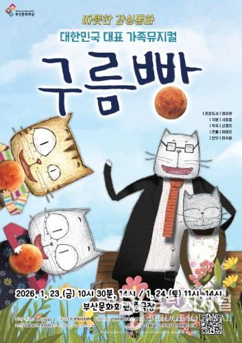 (재)부산문화회관은 오는 1월 23일부터 24일까지 이틀간 부산문화회관 중극장에서 가족뮤지컬 '구름빵'을 선보인다.