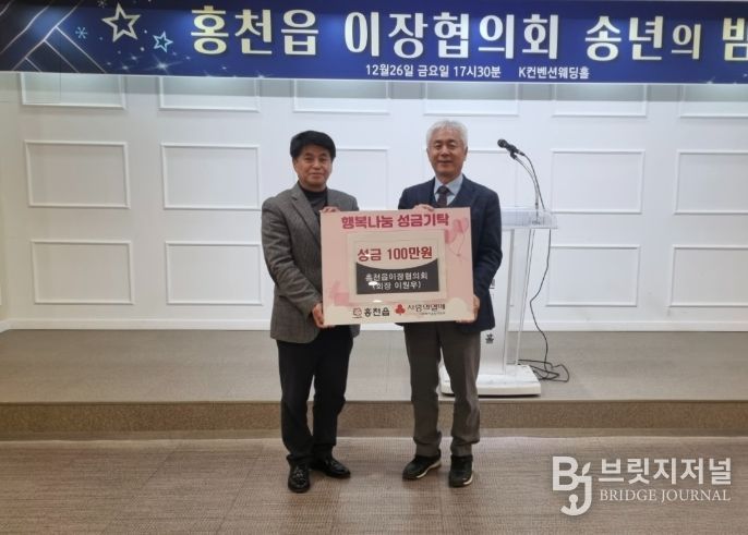 브릿지저널 윤나영 기자 | 홍천읍이장협의회(회장 이원우)가 연말을 맞아 지역사회에 따뜻한 나눔을 실천했다.