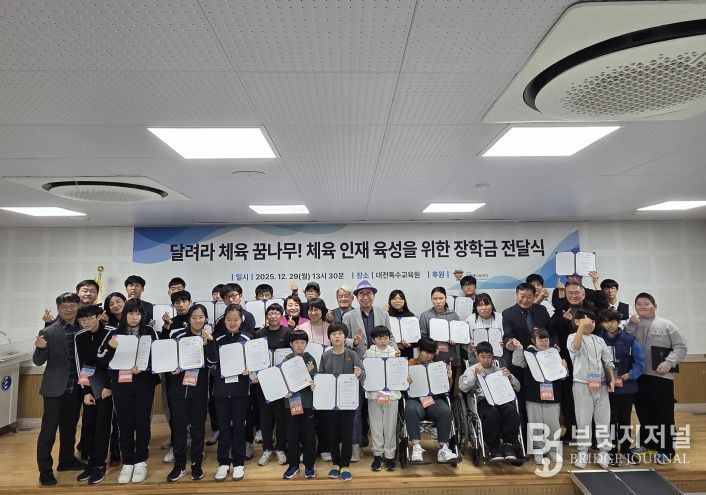 브릿지저널 정보영 기자 | 대전특수교육원은 12월 29일 본원과 한밭수목원 엑스포시민광장에서 장애학생 육상 종목 특기생과 미래 육상 꿈나무 63명을 대상으로 (재)조웅래나눔재단(이사장 조웅래)으로부터‘체육(육상) 종목 미래인재 장학금 전달식 및 달리기 행사’를 개최하고, 장학증서를 수여했다