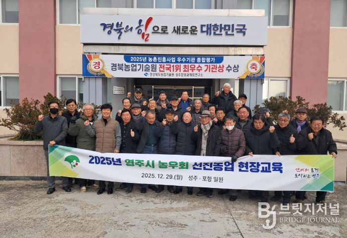브릿지저널 정보영 기자 | 영주시농우회(회장 서석현)는 지난 29일, 회원 38명이 참여한 가운데 성주, 포항 일원에서 열린 '2025년 영주시농우회 선진농업 연찬교육'을 성공적으로 마무리했다.