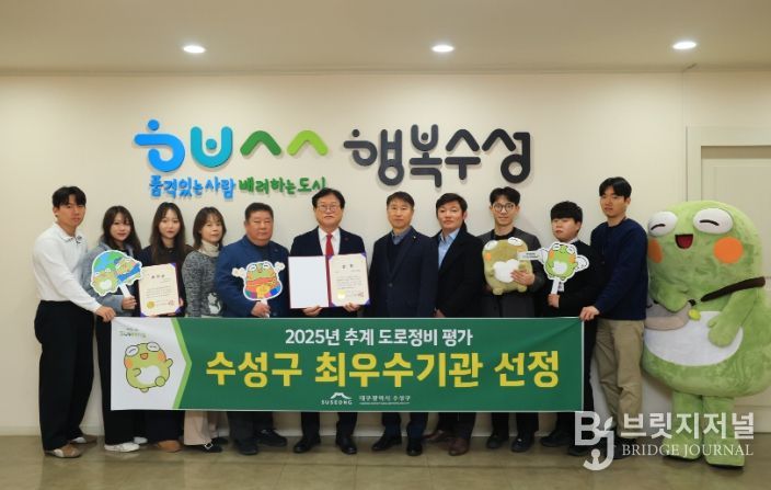 브릿지저널 김진석 기자 | 대구 수성구는 대구광역시와 각 구·군, 대구공공시설관리공단 등 13개 기관이 참여한 ‘2025년 추계 도로정비 평가’에서 최우수기관으로 선정됐다고 밝혔다.