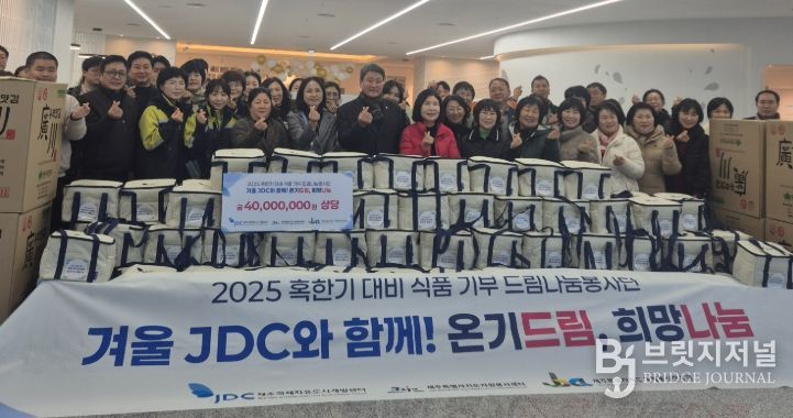 브릿지저널 정보영 기자 | 제주국제자유도시개발센터는 혹한기를 맞아 지역 내 취약계층의 건강하고 따뜻한 겨울나기를 지원하기 위해 JDC 임직원 봉사단인 드림나눔봉사단 활동의 일환으로 식품지원 활동 ‘겨울 JDC와 함께! 온기드림, 희망나눔’을 추진했다.