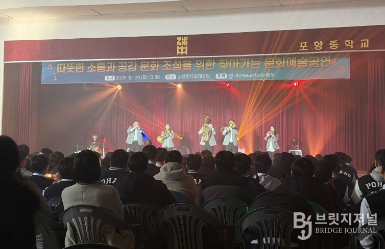 브릿지저널 정보영 기자 | 포항교육지원청은 2025년 12월 29일 포항중학교 체육관에서 학생·교직원·학부모 및 Wee센터 상담 인력 등 약 500명을 대상으로 찾아가는 문화예술공연을 개최했다.