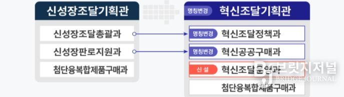 브릿지저널 정보영 기자 | 조달청은 공공조달을 통해 혁신기업의 성장을 지원하고, AI 등 디지털 기반 조달행정 강화를 위해 2026년 1월 1일부로 조직개편을 단행한다.