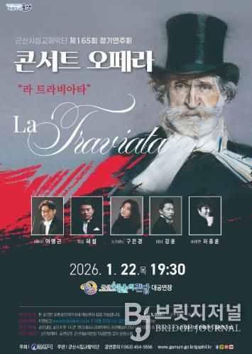브릿지저널 윤나영 기자 | 군산시립교향악단이 희망찬 새해를 맞아 오는 1월 22일 오후 7시 30분, 군산예술의전당 대공연장에서 제165회 정기연주회 콘서트 오페라 ‘라 트라비아타를 개최한다.