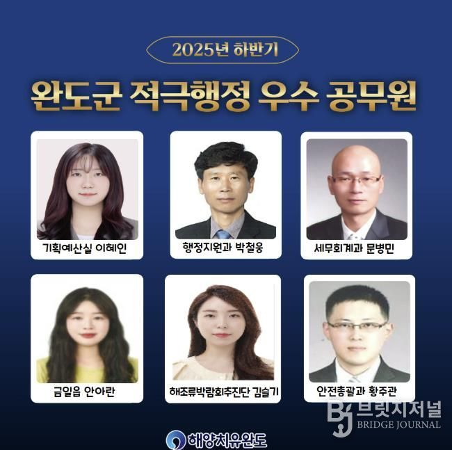 브릿지저널 김경미 기자 | 완도군은 지난 24일 적극행정위원회를 개최하고 ‘2025년도 하반기 적극 행정 우수 공무원’ 4명과 협업팀 2팀을 선정했다.