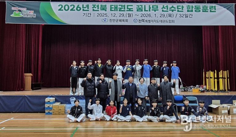 브릿지저널 윤나영 기자 | 진안군은 지난 12월 29일부터 내년 1월 29일까지 32일간 전북특별자치도 태권도 꿈나무 선수단 및 합동훈련팀 212명이 진안 문예체육회관에서 전지훈련에 돌입했다고 밝혔다.