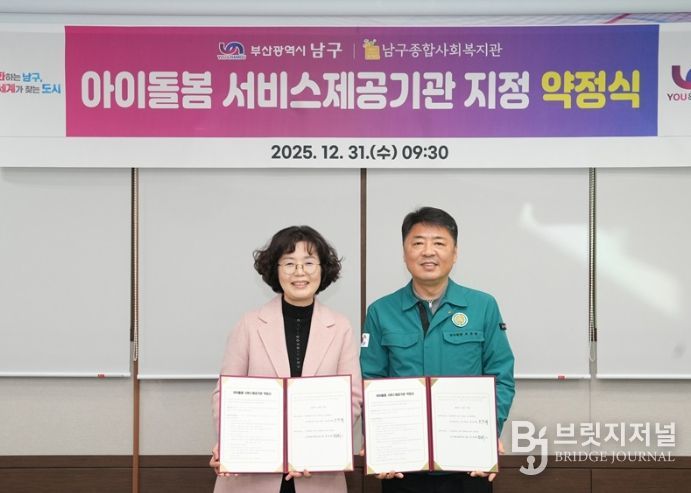 [제호 부산 남구는 남구종합사회복지관과 지난 12월 31일 남구청에서'아이돌봄 서비스제공기관 지정 약정식'을 체결했다고 밝혔다.
