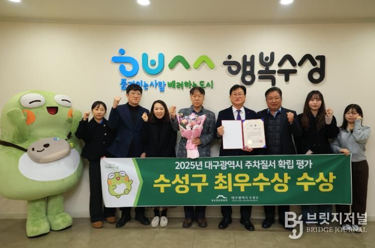 브릿지저널 김진석 기자 | 대구 수성구는 대구광역시가 주관한 ‘2025년 주차질서 확립 구·군 평가’에서 최우수상을 수상했다고 밝혔다.