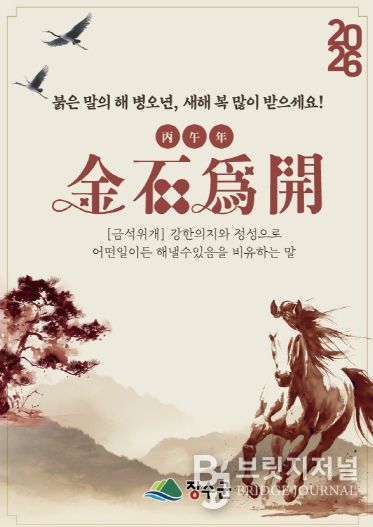 브릿지저널 윤나영 기자 | 장수군은 2026년 병오년(丙午年) 새해를 맞아 군정 운영의 방향을 담은 신년 사자성어로 ‘금석위개(金石爲開)’를 선정했다.