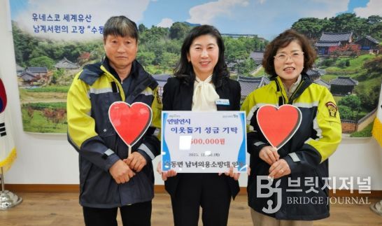 수동면 남녀의용소방대(대장 안동근·정현화)는“비록 큰 금액은 아니지만 지역의 어려운 이웃들이 따뜻한 연말을 보내는 데 도움이 되길 바라는 마음으로 성금을 마련했다”라며 “앞으로도 지역사회 발전과 안전을 위해 적극적인 활동을 이어가겠다”라고 전했다.