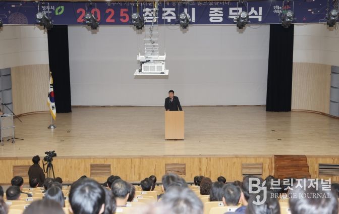 브릿지저널 김경미 기자 | 청주시는 31일 문화제조창 5층 한국공예관 공연장에서 ‘2025년 종무식’을 개최했다. 행사에는 이범석 청주시장을 비롯한 시 공직자 300여명이 참석했다.