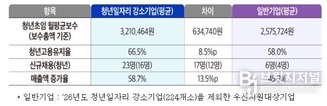 브릿지저널 정보영 기자 | 중소벤처기업부는 31일 고용노동부와 함께 청년고용 실적과 기업경쟁력 등을 갖춘「2026년도 청년일자리 강소기업」 224개소를 선정·발표했다.