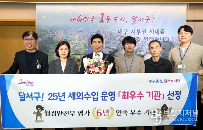 브릿지저널 김진석 기자 | 대구 달서구는 행정안전부가 전국 243개 지방자치단체를 대상으로 실시한 ‘2025년 세외수입 운영·실적 분석 진단 평가’에서 최우수기관으로 선정돼, 세외수입 분야에서 전국 유일의 6년 연속 우수기관이라는 성과를 거뒀다.