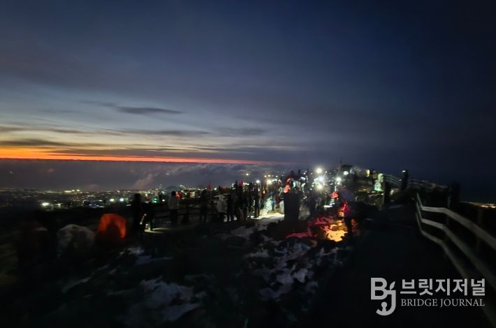 한라산도 새해를 맞는 발걸음으로 북적였다. 2026년 새해맞이를 위한 한라산 야간산행에는 정상 탐방 예약자 1,500명을 포함해 2,650여 명이 참여했다.