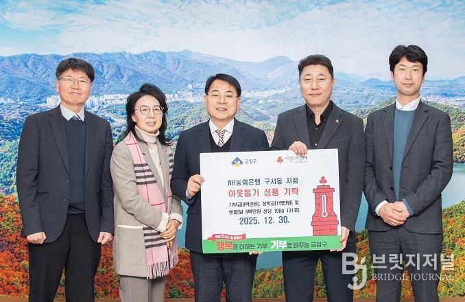 윤일현 금정구청장은 "연말을 맞아 어려운 이웃을 위해 따뜻한 나눔을 실천해 준 NH농협은행 구서동지점에 깊이 감사드리며, 전달받은 성금과 성품은 추운 겨울 도움이 필요한 이웃을 위해 잘 전달하겠다”라고 밝혔다.