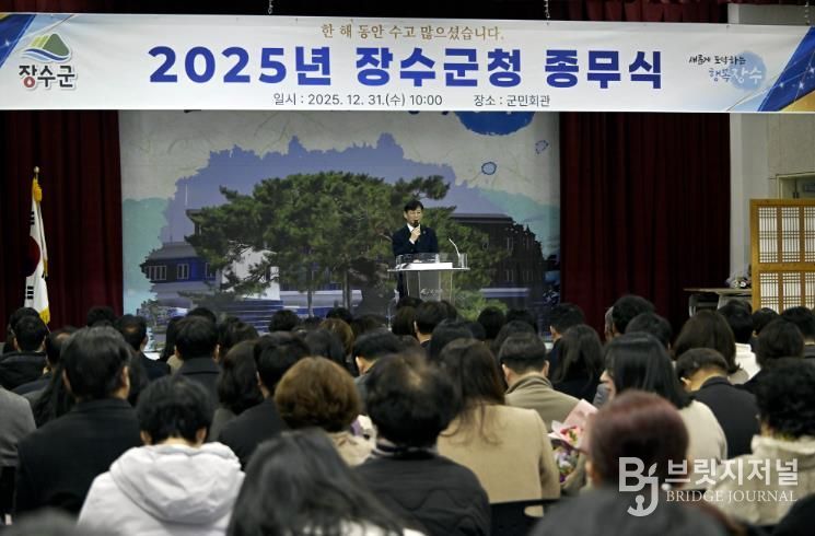 브릿지저널 윤나영 기자 | 장수군은 지난 31일 군민회관에서 직원 200여 명이 참석한 가운데 2025년 종무식을 열고 을사년 한 해의 업무를 마무리했다.