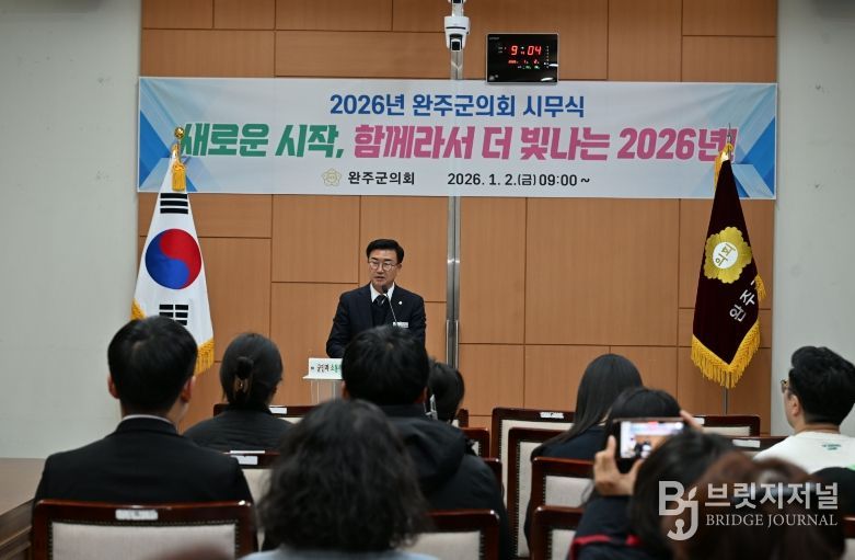 브릿지저널 윤나영 기자 | 완주군의회는 2일, 의회 문화강좌실에서 2026년 시무식을 열고 새해 의정활동의 힘찬 출발을 알렸다.