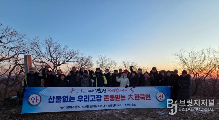 브릿지저널 정보영 기자 | 소천면 산악회와 의용소방대는 1월 1일 청옥산에서 새해를 맞이하는 해맞이 행사를 개최하여 희망찬 새 출발을 알리고 산불 예방 캠페인도 실시했다.