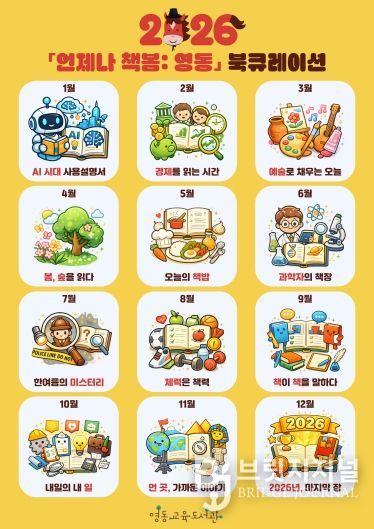 브릿지저널 김경미 기자 | 영동교육도서관은 2026년 1월부터 12월까지 '언제나 책봄: 영동' 북큐레이션을 운영한다. 매월 주제에 맞는 대상별 추천도서 32권을 전시하여 도서관 이용자에게 다양한 독서 경험을 제공하기 위함이다.