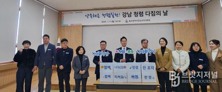 브릿지저널 윤나영 기자 | 울산 강북·강남교육지원청은 지난 5일 새해를 맞아 전 직원이 참석한 가운데 청렴 실천 서약식을 열고, 공정하고 투명한 공직문화 조성에 대한 의지를 다졌다.