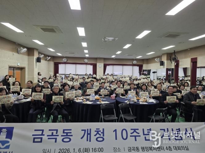 브릿지저널 김경미 기자 | 2026년 개청 10주년을 맞은 권선구 금곡동은 지난 6일 지역구 의원과 주민 등 100여 명이 참석한 가운데 주민자치회 및 통장협의회와 함께 10주년 기념행사를 개최했다.