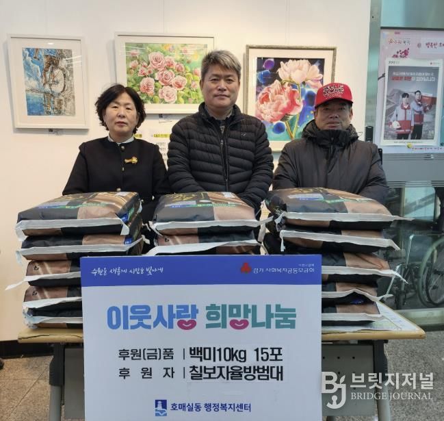 브릿지저널 김경미 기자 | 수원자율방범대 칠보지대에서 호매실동행정복지센터에 따뜻한 나눔을 실천하며 훈훈한 감동을 주고 있다.
