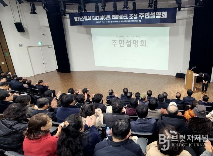 브릿지저널 김진석 기자 | 대구 수성구는 7일 칼라스퀘어(대구스타디움몰) 내 시청자미디어센터 다목적홀에서 ‘칼라스퀘어 미디어아트 테마파크 조성 주민설명회’를 개최했다.