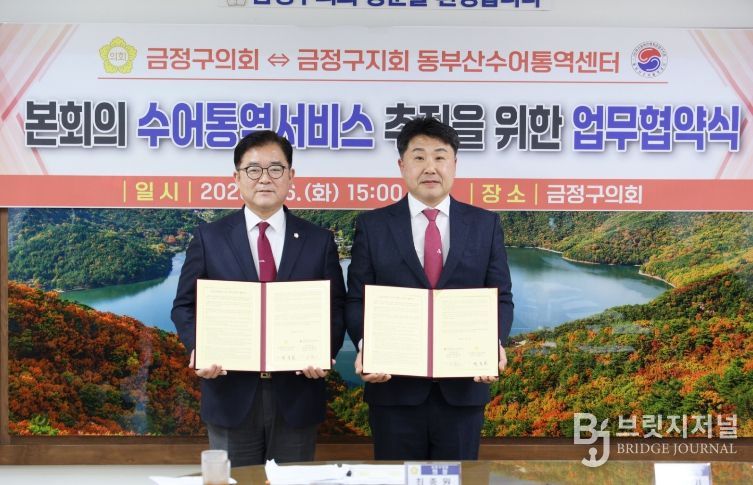 브릿지저널 윤나영 기자 | 금정구의회는 2026년 1월 6일, 금정구의회 의장실에서 동부산수어통역센터(센터장 여복기)와 '본회의 수어통역 서비스 제공을 위한 업무협약'을 체결했다.
