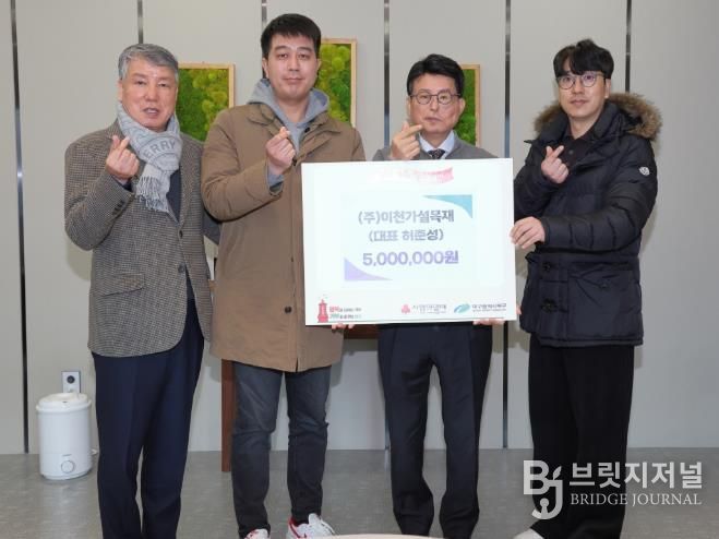 브릿지저널 김진석 기자 | ㈜이천가설목재에서는 1월 7일 북구 저소득층 지원을 위한 성금 500만 원을 대구 북구청에 기탁했다.