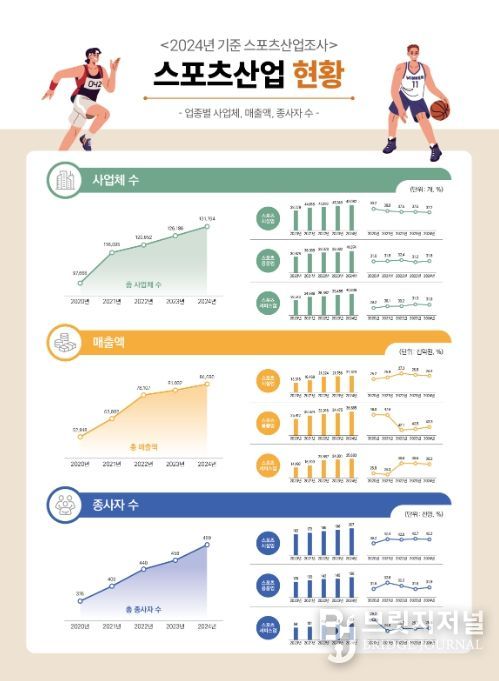 업종별로는 스포츠용품업 매출이 6.4% 증가하며 가장 높은 성장률을 보였고, 스포츠서비스업은 3.6%, 스포츠시설업은 2.6%의 성장률을 기록했다.