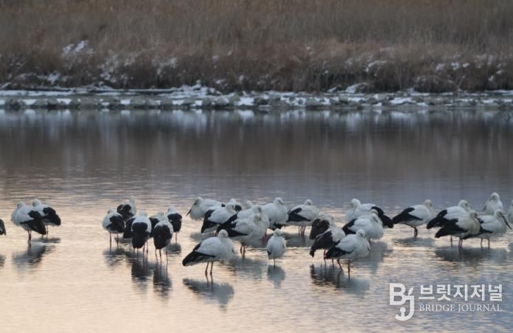 브릿지저널 윤나영 기자 | 고창군이 해리천 일원에서 환경부 멸종위기종 1급이자 천연기념물인 황새 무리가 역대 최대 규모인 80여 마리나 월동 중인 것으로 확인됐다고 9일 밝혔다.