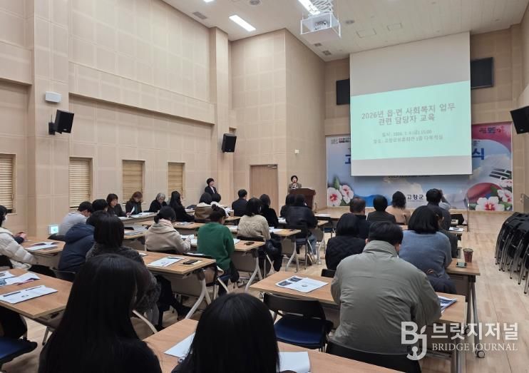 브릿지저널 윤나영 기자 | 고창군이 지난 9일 고창군보훈회관 1층 다목적실에서 읍·면 사회복지 업무 담당자 30여 명을 대상으로 2026년 사회복지사업 추진방향 교육과 공유의 시간을 가졌다.