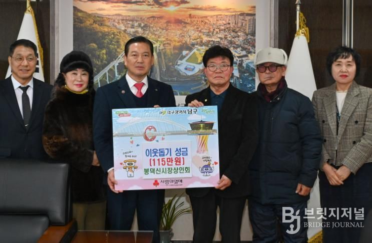 브릿지저널 김진석 기자 | 대구 남구는 지난 7일 봉덕신시장 상인회(회장 함광식)에서 성금 115만원을 기탁했다고 밝혔다.