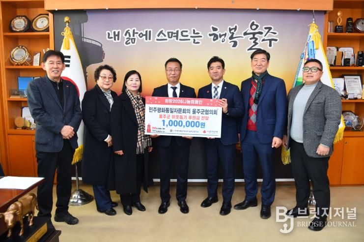 브릿지저널 윤나영 기자 | 민주평화통일자문회의 울주군협의회가 12일 울주군에 지역 저소득세대를 위한 성금 100만원을 전달했다.