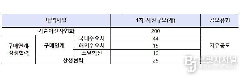 브릿지저널 정보영 기자 | 중소벤처기업부는 중소기업의 기술사업화 촉진을 위한 「2026년 민관공동기술사업화(R&D) 1차 시행계획」을 12일(월) 공고하고, 1월 29일(목)부터 2월 12일(목(까지 참여 기업을 모집한다고 밝혔다.