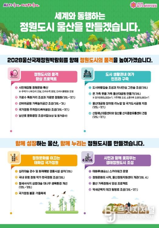 브릿지저널 윤나영 기자 | 울산시가 2026년 한 해 동안 정원도시의 품격을 높이고 시민과 함께 성장하고 누리는 ‘세계와 동행하는 정원도시 울산’ 만들기에 총력을 기울인다.