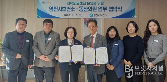 브릿지저널 정보영 기자 | 영천시는 13일 장기요양 수급자 등 거동이 불편한 환자들에게 체계적인 재택의료 서비스를 제공하기 위해, 민간의료기관인 동산의원과 ‘장기요양재택의료센터 시범사업’ 추진을 위한 업무협약(MOU)을 체결했다고 밝혔다.